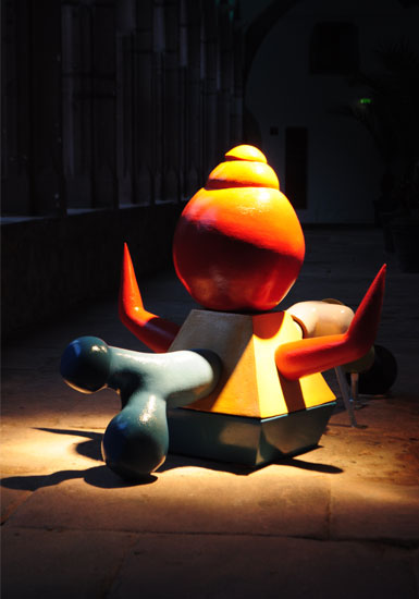 Une sculpture composée de différents éléments en céramique, en bois et en métal, qui s'emboitent pour former un personnage ?