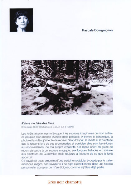 Les forêts alsaciennes m'évoquent les espaces imaginaires de mon enfance, peuplés d'un monde invisible mais palpable. A travers la céramique, la photo et la vidéo, j'ai tenté de récréer l'état d'esprit, la liberté, la créativité que je ressens lors de ces promenades et combien elles sont bénéfiques au renouvellement de ma propre créativité....